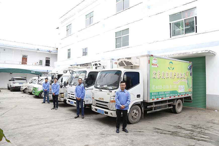 宏泰发自备运输工具,保证每天所配送的产品新鲜质优,在配菜、送菜过程中实行专人负责的一条龙服务,根据客户不同需求按时,按量送货,且不耽误作餐的时间。